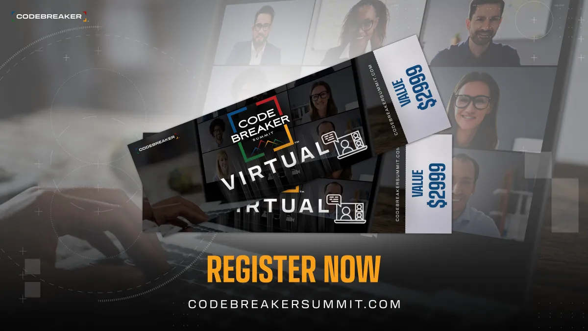 Increase your sales, influence, and impact up to 300% when you attend the Codebreaker Summit, the ultimate live training experience for sales professionals, business owners, and entrepreneurs!
